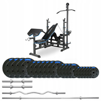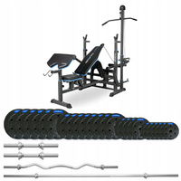 In verkoopbest.pl vind je zorgvuldig samengestelde sets die alles bieden wat je nodig hebt voor effectieve krachttraining thuisde bank is voorzien van: een verstelbare bank met verstelbare rugleuninghoek (recht, schuin, met bidstang of rekken), stevige halterrekken, verschillende grepen (recht, gebroken, kort) en halterschijven van 50 kg tot 147,5 kg. Plus praktische accessoires zoals clips en beenklemmen om de veiligheid tijdens het sporten te garanderen.