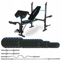 Krachtset 117,5 kg met halterbank VIGOR-A van het merk THUNDER en Super Curl Bar
